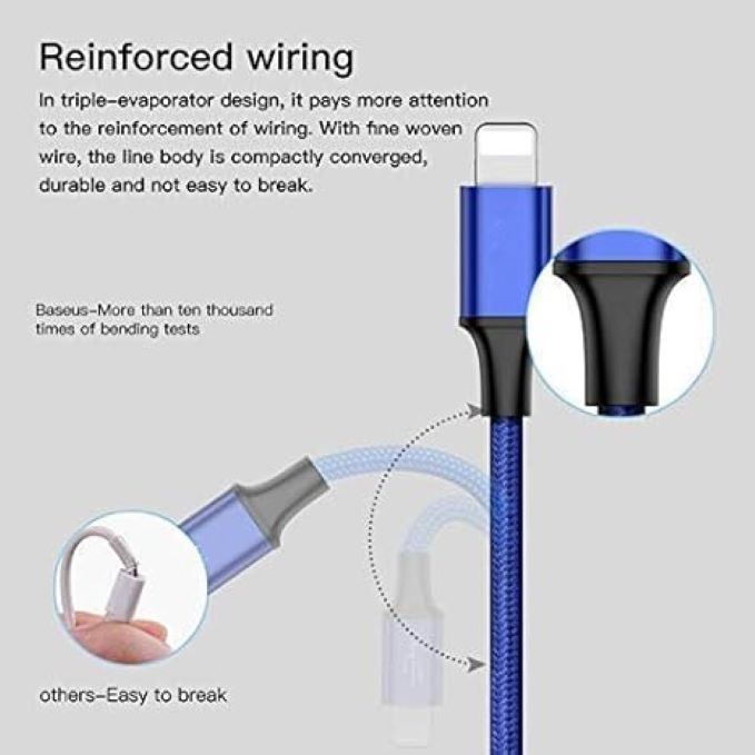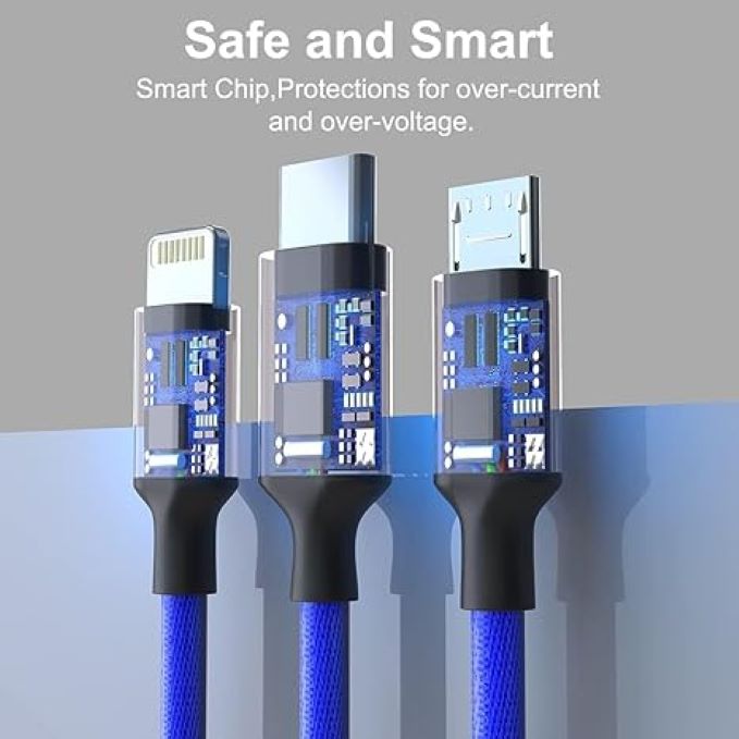 Fast Charging Cable - This 3 in 1 USB cable supports fast charging with a speed of up to 3.4A to all your gadgets including smartphones, tablets, Bluetooth speakers, and much more. Convenient Length - This multi-pin USB cable comes with an ideal length of 1.2m which eliminates the struggle of finding nearby switchboards. Ultra Durable Cable - This cable is crafted with a thick PVC jacket giving you an extra toughness with 11000+ bends lifespan cycle. UNIVERSAL CABLE - This Cable is Touch and Sleek , Highly Durable , Premium Metal Housing Cable , Compatible with any Charging adaptor. It is suitable for many applications, such as, put this cable in your car so your passengers can charge their phones; Lie on the sofa or bed and play with the phone while charging the phones; Share it with your family when you are watching TV and so on