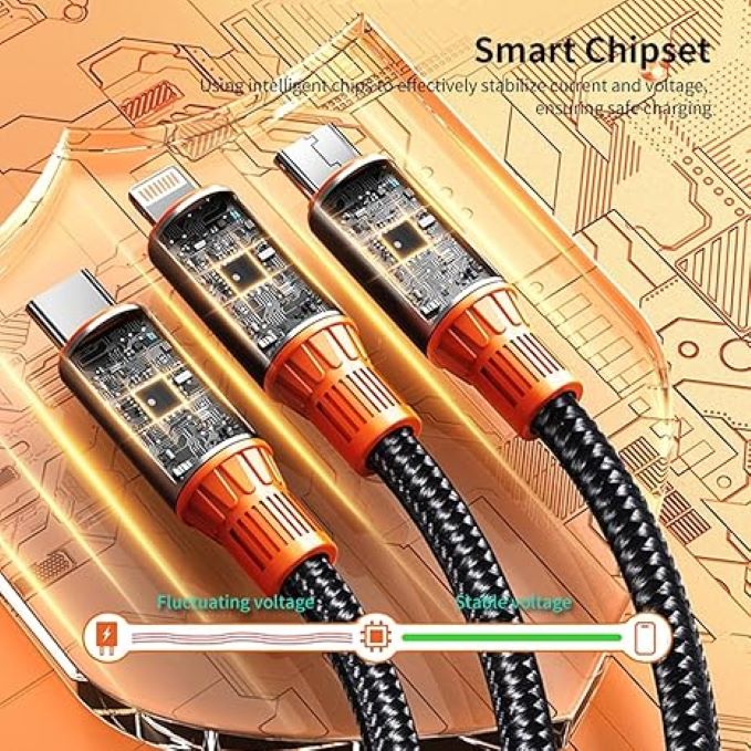 5 in 1 100W Fast Charging & Data Transfer cable: 5 in 1 100W Fast Charging & Data Transfer cable delivers lightning-fast charging and seamless data syncing. With up to 5A output current (USB to Type-C), experience high-speed, safe charging. USB 3.0 ensures speeds of up to 480Mbps for efficient file transfers. lightweight and portable 5-in-1 Cable: lightweight and portable 5-in-1 Cable is designed for simplicity and convenience. Whether you're at home, the office, or traveling for business, it's the perfect companion. Durable construction ensures reliability wherever you go. Durable & Dependable: 5 in1 100W Cable, featuring high-quality nylon braiding and premium aluminum alloy, is built to last. Withstanding over 12,000 bends, it's both durable and safe.
