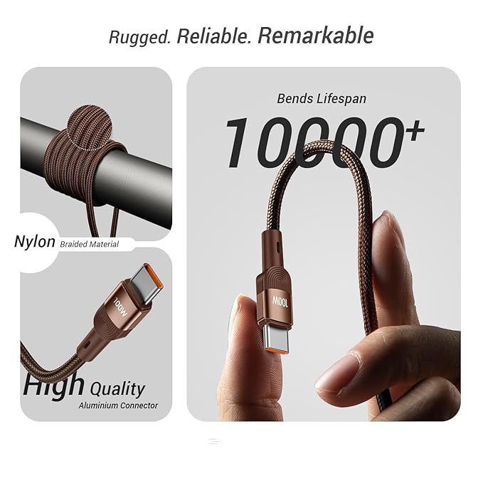 Ultra-Fast 100W Charging & Data Transfer: Experience fast charging with Hammer USB Type C 100W (20V/5A) max output, ensuring rapid power delivery for your OnePlus smartphone. It also supports high-speed data transfer, making file sharing seamless and efficient WARP & VOOC Fast Charging Compatible: Designed specifically for OnePlus devices, this cable supports WARP and VOOC fast charging technology, delivering optimized power for ultra-fast charging without overheating or power fluctuations Durable Nylon Braided Design: Crafted with a premium nylon braided exterior and reinforced copper wire, this cable offers superior durability, preventing fraying and ensuring a longer lifespan, even with daily heavy use.