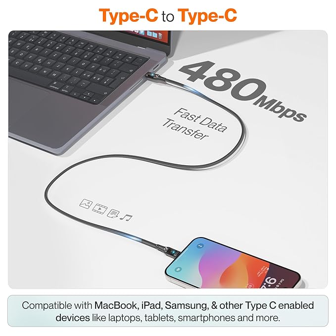 60W Charging: Experience fast and efficient charging with the ABCC-12T, capable of delivering up to 60W of power to your devices. 12000+ Bending Lifecycle: Built to last, this cable boasts a bending lifecycle of over 12000 cycles, ensuring long-term durability and reliability. 3A Fast Charging Speed: Enjoy rapid charging with a 3A fast charging speed, allowing you to power up your devices quickly and efficiently. Power Delivery Technology: Equipped with Power Delivery (PD) technology, the ABCC-12T optimizes power output for safe and efficient charging.