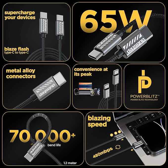 Supports upto 65W fast charging and 480 MBPS blazing-fast transfer speeds Features over 70k bend life and can withstand up to 60k insertions making it highly durable and versatile for all your needs Overheat protection and stable current output leads to protection from overheating, short-circuiting and much more High-quality materials used for construction to ensure reliability and longevity Slim and compact design for easy portability and storage.