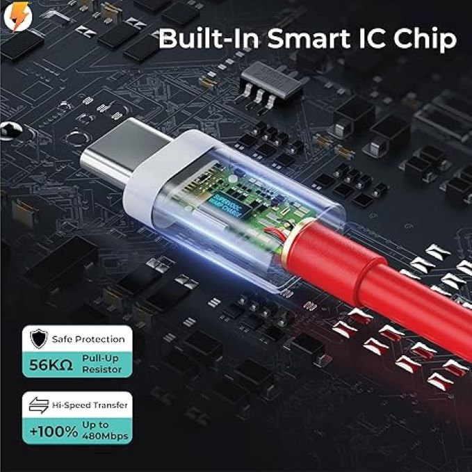NEVER SLOWS YOU DOWN: Our custom-engineered One Plus Warp Charge 30 Power Adapter is designed with integrated circuits, ensuring heat is dissipated within the adapter itself before it ever reaches your phone. FASTER AND SAFER: Experience quicker, safer, and cooler charging that stays efficient – even while you're browsing, gaming, or enjoying anything else on your One Plus device. WARP/Dash/Supervooc/UltraDart 8A USB Type C Data Sync Fast Charging Cable with extremly fast charge speed. HIGH-SPEED DATA SYNC: Enables data transfer speeds of up to 480 Mbps, allowing you to save time when moving files, photos, music, movies, videos, and more between your phone and other devices.