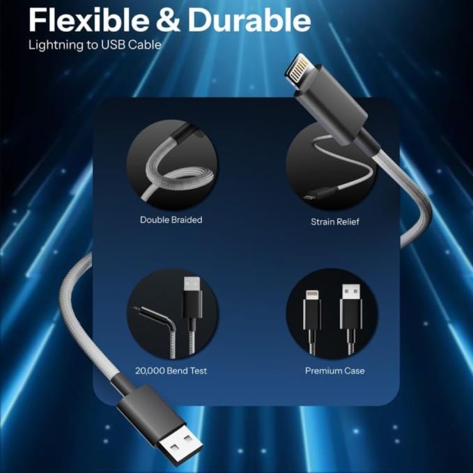 Fast Charging Support: Delivers quick and efficient charging to keep your devices powered up without delay. Durable Nylon Braiding: High-quality braided material resists wear and tear, making it more durable than standard cables. Universal Compatibility: Compatible with iPhone 14, 13, 12, 11 Pro Max, XR, XS, X, 8, 7, 6 Plus, iPads, and other Apple Lightning devices. Tangle-Free Design: Flexible and easy-to-manage cable prevents tangles, ensuring a hassle-free charging experience.