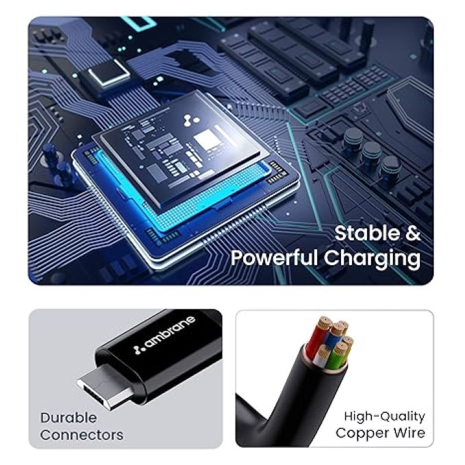 Fast Charging Cable - The cable can support upto a charging speed of 3A making it the optimal for Quick Charge / Rapid Charge and Turbo Charge devices. Durable Cable- Using only premium quality materials and a tough, durable PVC Coating, the Ambrane USB cable is built for connecting and disconnecting over and over again without signal loss. High Speed Data Transfer- 480 Mbps data transfer speed allows you to sync the data to the computer or other USB devices within few seconds. Genuine USB Connectors- We use only certified and high-quality connectors ensuring not only the safety of the connected device but also reliable charging and high-speed data transmission Universal Compatibility - Cable is fully compatible with Android Devices, Tablets, Bluetooth speakers, cameras, camcorders etc. and any other device that charges through a Micro USB cable.