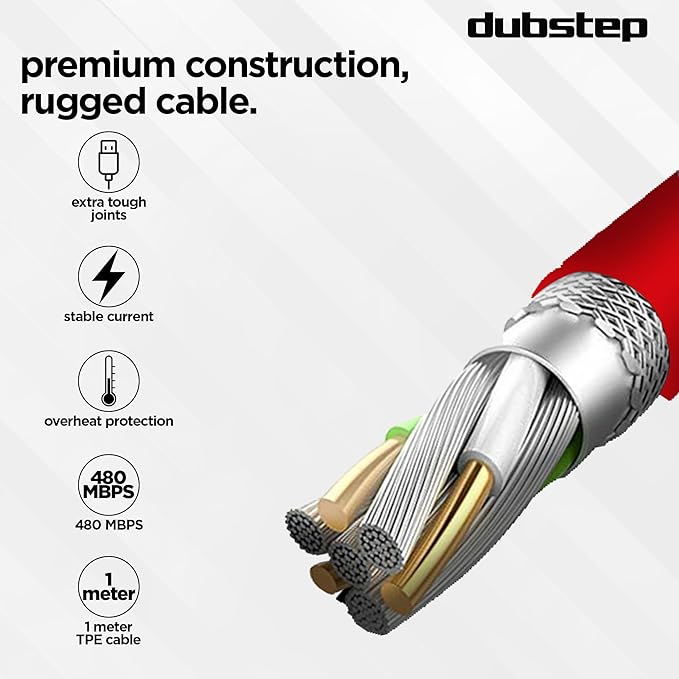 USB Type C cable with 3.5 A current rating and 1 meter length with Powerblitz Technology Supports fast charging up to 50W and blazing fast data transfer speeds of up to 480 MBPS Features a durability of over 60K bends and 50K insertions for increased durability Stylish red color adds a pop of color to your device accessories One cable for all your charging needs, eliminating the need for multiple cables.