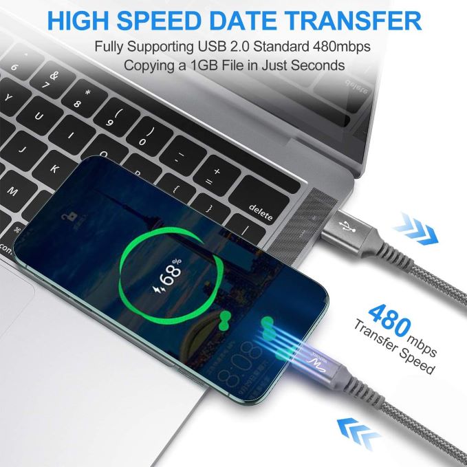 With a tested 20000+ bend lifespan, type c charging cable with heavy duty braided and strong metal connections is far more durable with best price for your long life charging use. Wayona's 2meter/6ft USB C cable support QC3.0 Fast Charging and Data Syncing, max current 3.0A and transfer speed up to 480Mbps. Built-in 56K pull-up resistor and strong metal connections provide outstandingly reliable conductivity and stability.