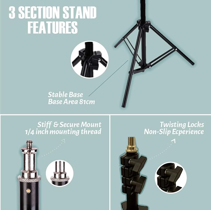 Comes with shock absorption springs mechanism that protects equipment and fingers from damage & requires less efforts to assemble and disassemble. It’s all 3 sections are secured with flip locks for better hold and slip free experience. This must have light stand is strong enough to hold most equipment yet compact and light weight enough for travel. Made of strong yet lightweight aluminum, this Light stand transitions effortlessly from one spot to another and transports easily. This Light stand offers a collapsible design where the handle rotates down, the legs contract and everything folds in, creating a short, compact size.