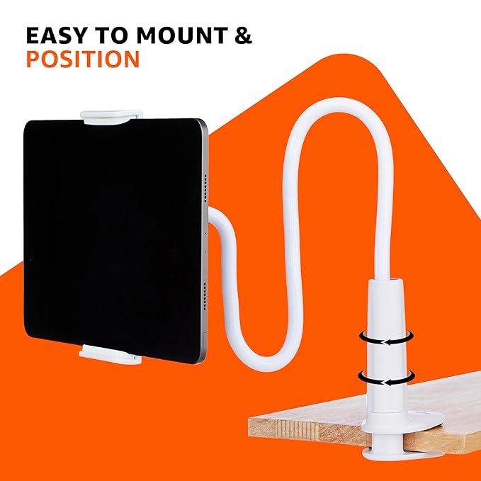 The holder is designed to accommodate mobile devices and tablets ranging from 4.7 inches to 10.6 inches in screen size diagonally. It is compatible with various models and brands, ensuring a wide range of device compatibility. Secure Grip: The holder features a secure grip mechanism that holds your device firmly in place. It prevents accidental slips or falls, providing a stable and reliable hold for your mobile or tablet. 360-Degree Rotation: With a 360-degree rotation feature, you can easily switch between portrait and landscape orientations. This enables you to use your device in different modes, whether you're watching videos, browsing the web, or making video calls.