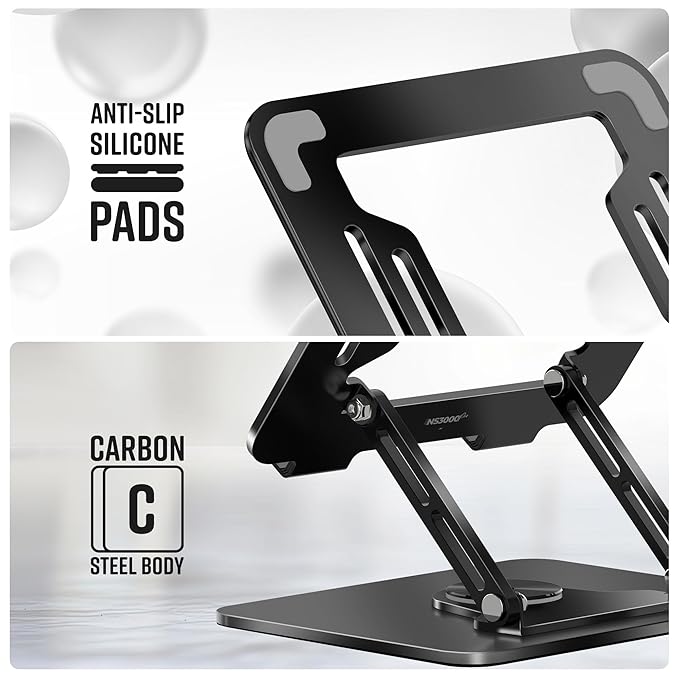Size support: The ZEB-NS3000 Pro can support devices weighing up to 5kg, securely holding even the heaviest laptops. Additionally, it accommodates laptops up to 43.18cm (17 inches) in size. 360° Rotatable Design: The laptop stand features a 360° rotatable design, offering unparalleled flexibility, allowing you to effortlessly adjust the orientation of your device, making it ideal for collaborative work environments. Anti-Slip Pads: The laptop stand is designed with anti-slip silicone pads which are strategically placed to ensure that your device remains firmly in place, even during intense typing sessions. Ergonomic design: The foldable and ergonomic design of the ZEB-NS3000 Pro is designed user-friendly stand that can be easily folded, making it portable and conv