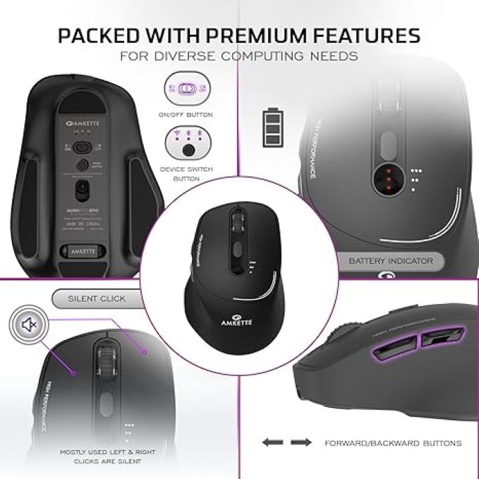 ??????????-???????????? ????????????????????????: Connect up to 3 devices (2x Bluetooth 5.2 and 1x USB 2.4 GHz) and switch between them effortlessly with a dedicated button. ?????????????????? ???????????? ???????? ???????????? ????????????????: Designed for comfort and quiet operation, allowing for extended use without strain and a distraction-free environment. ???????????????????????? ?????????? ???????????? ?????? ???????????????????? ?????? ????????????: S201 sensor helps with High-precision tasks and DPI button helps in customizing your cursor speed with four DPI levels: 800, 1200, 1600, and 2400. ???????????????????????? ?????????????? ???????? ????????-?? ????????????????: Equipped with a rechargeable 500 mAh battery & convenient Type-C charging for hassle-free power management. ?????????????? ????????????????????:Check battery levels directly on the mouse or on connected devices. › See more product details