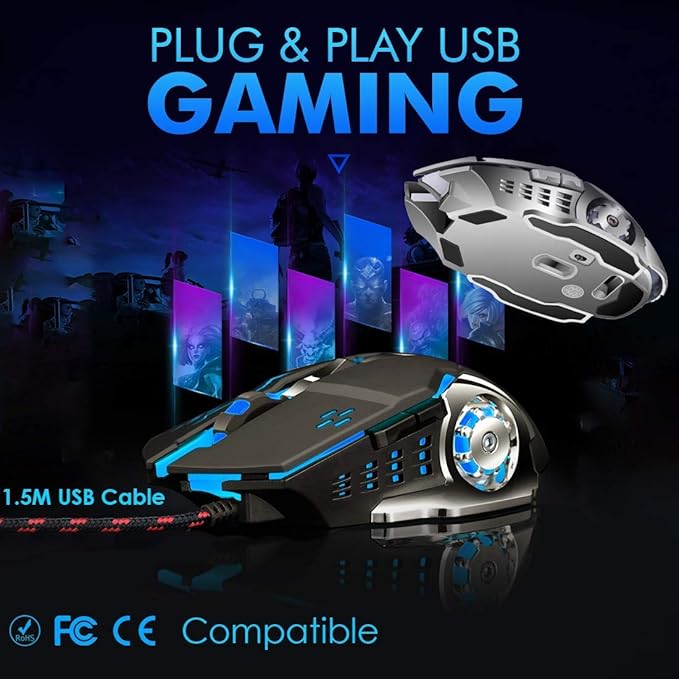 4 buttons on top with a scroll wheel and 2 on the left which can be customized as per requirement. 4 different breathing colors, which keep switching automatically one after another. 4 different DPI levels of 1200, 1600, 2400, 3200 respectively. Cable Length are 1.5m and Nylon Braided so easily use with distance.