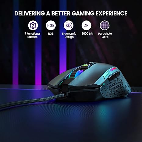 High-End PC Gaming Mouse: This RGB gaming mouse has 7 programmable buttons – Left, Right, Scroll, DPI, Forward, Backward, and RGB Light buttons. EKSA RGB mouse will empower you to make quicker decisions with a wide array of buttons at your fingertips and meet your different game demands. Plus, the included 5inch flexible braided cable causes little or no drag for unhindered swipes. Ergonomic Shape for Esports and Competitive Play: EKSA wired gaming mouse fits perfectly into any hand size. Designed for long-lasting comfort and fast movement, it provides responsive input and a comfortable gaming experience with less fatigue after hours of gameplay. The sides also provide friction, eradicating the possibility of the mouse slipping from your hands and aiding quick and precise movement that is essential in games.