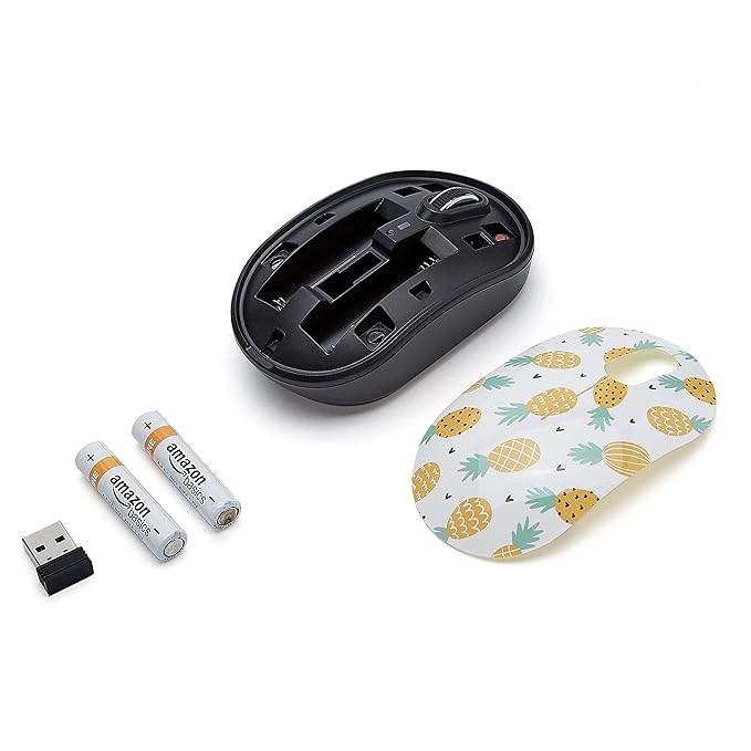 Compact 2.4GHz wireless mouse (not Bluetooth) with ergonomic grip; Windows and Mac OS compatible 5-button design for dynamic usability; includes left and right click, scroll wheel/button, and forward and back buttons 1600 DPI sensitivity for precise control; plug-and-play USB Nano receiver included for wireless use Mouse goes into sleep mode after being idle for 5 minutes 2 x AAA batteries included.